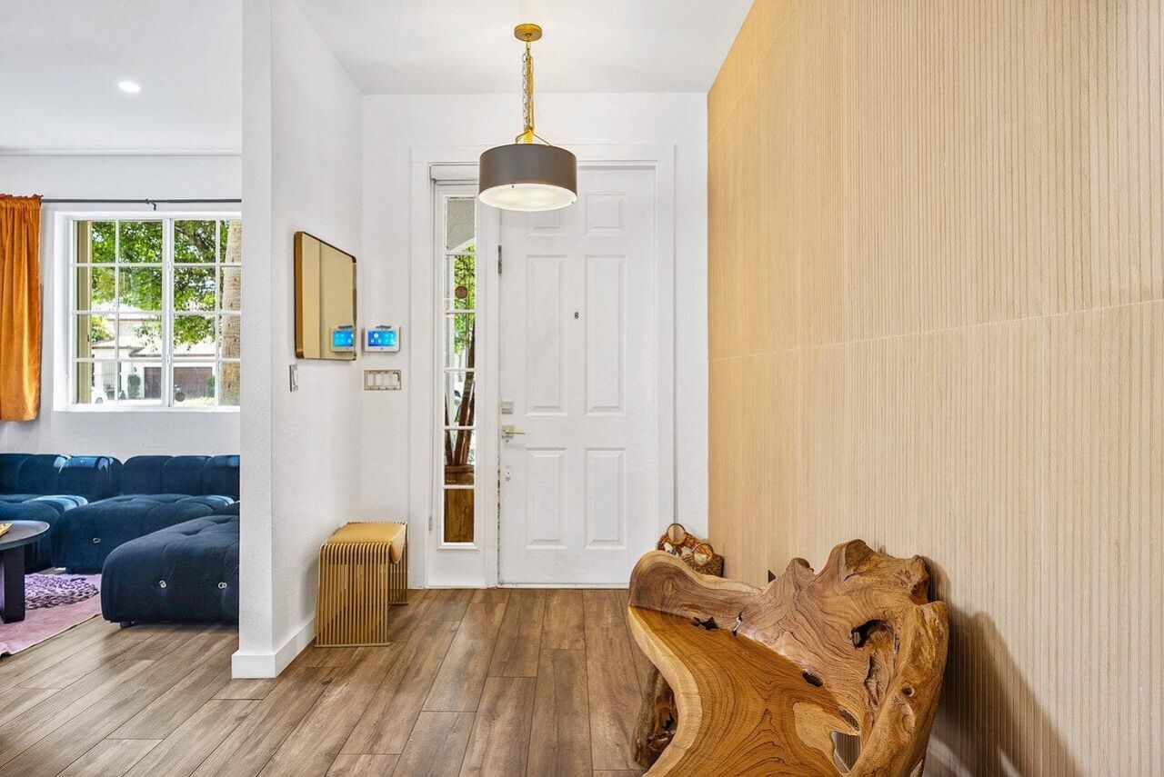 A beautiful 5 BD 3 BA two-story home in Boca Vistas with chic wood flooring and a clean, modern feel throughout. The spacious open layout offers two expansive living areas, a dedicated dining space, and a thoughtfully designed kitchen at the heart of the home. White cabinetry and warm gold accents are paired with a striking green marble waterfall island with seating, creating a chef's kitchen that feels both elevated and inviting. Just off the main living area, a cozy den provides flexibility an...A beautiful 5 BD 3 BA two-story home in Boca Vistas with chic wood flooring and a clean, modern feel throughout. The spacious open layout offers two expansive living areas, a dedicated dining space, and a thoughtfully designed kitchen at the heart of the home. White cabinetry and warm gold accents are paired with a striking green marble waterfall island with seating, creating a chef's kitchen that feels both elevated and inviting. Just off the main living area, a cozy den provides flexibility and can easily function as a home office or additional bedroom. Upstairs, the primary suite offers a more refined, moody aesthetic, featuring dark custom built-ins and an updated bath with rich marble finishes. Three additional bedrooms and a versatile den space overlooking the staircase complete the upper level. Outdoors, a private fenced yard offers a mix of covered and open patio space, along with a grassy area ideal for a play space or garden.